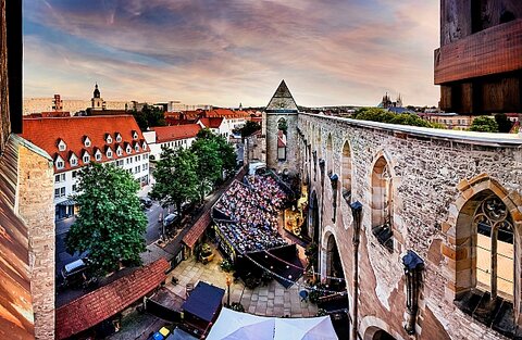 Die Erfurter Krämerbrücke begeht 2025 ein außergewöhnliches Jubiläum: 700 Jahre steinerne Krämerbrücke. Spannende Führungen, mitreißende Konzerte, inspirierende Vortragsreihen und beeindruckende Theaterstücke, die die Geschichte und Geschichten der Krämerbrücke zum Leben erwecken, warten auf die Besucher. Den Höhepunkt bildet das Krämerbrückenfest, Thüringens größtes Altstadtfest, vom 13. bis 15. Juni. Über der Erfurter Altstadt erhebt sich die barocke Stadtfestung Zitadelle Petersberg. Dort wird am 5. Juli das Petersbergfest gefeiert. Den ganzen Tag lang können sich Jung und Alt auf ein buntes Veranstaltungsprogramm freuen.
