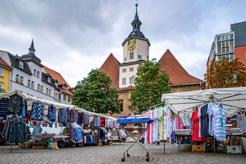 Hinweis: Bei schlechten Witterungsverhältnissen oder extremen Temperaturen kann es zu Änderungen bei der Anzahl der Stände kommen. Informieren Sie sich idealerweise tagesaktuell, wie viele Händler:innen auf dem Markt zu finden sind (maerkte@jena.de, +49 3641 49-8144).