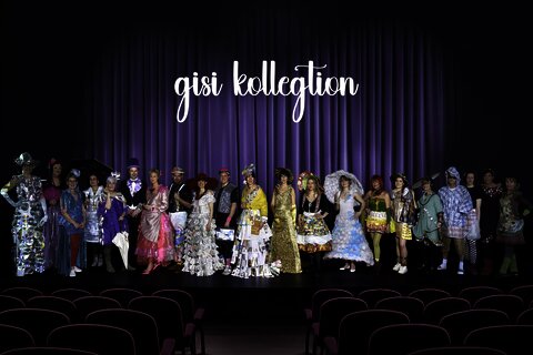 Für die sogenannte „Gisi-Kollektion“ wurde viel Müll gesammelt wie leere Milchverpackungen, Kaffeetüten, Verpackungen von Schokolade, Tee und Chips, Toilettenpapierrollen. Gabi Thiele, Iris Dietrich und Silvi Reinhardt, Mitarbeiterinnen des Vereins Diakonie Doppelpunkt, haben als Designerinnen Kleidung für Frauen und Männer entworfen. Im Werkstattladen und in der Seniorentagesgruppe wurden die Kostüme mit Titeln wie Toffi-Fee, Extravaganter Blätterregen, Milka-Man und Origami-Fashion gemeinsam mit den Beschäftigten gefertigt. „Es wurde geklebt, geschnitten, getackert und genäht. Wir hatten alle viel Spaß dabei“, berichtet Iris Dietrich. Zur Vereinsfeier wurde die Kleidung in einer Modenschau präsentiert.
