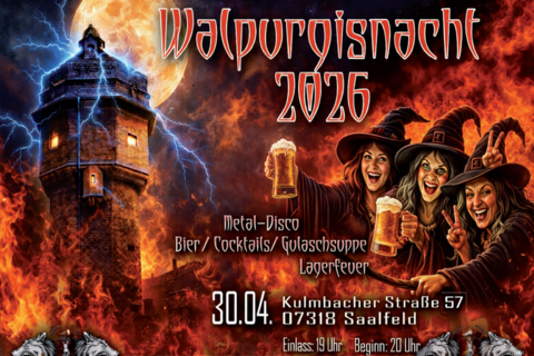 ... Chart-Pop und der aktuellen Playlist aus dem Fahrstuhlradio? Dann solltest Du am 30.04. am alten Wasserturm an der AGIP-Tanke in Saalfeld vermutlich einen großen Bogen machen. Denn dort trifft sich – wie es die Tradition verlangt – der Saalfelder Metalstammtisch zur alljährlichen Walpurgisnacht-Zusammenkunft, und dabei gibt’s garantiert nichts Weichgespültes auf die Ohren.