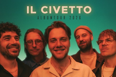 Wenn Il Civetto kommen, geht die Sonne auf: 2010 als Straßenmusik-Trio gestartet, gewinnen sie mit ihrem hybriden Pop-Sound schon bald jede Festivalcrowd für sich: Montreux Jazz Festival, Fusion Festival, Summerjam Festival … Hunderte Shows und vier Alben später sind die Berliner aus der deutschen Pop-Landschaft nicht mehr wegzudenken – mittlerweile als Quintett unterwegs, feiern Il Civetto 2026 mit ihrem fünften Album ein radikal schönes Comeback: Die neue Single „du bist schön (memo)“ erinnert uns daran, dass alles in Ordnung ist. Selbst inmitten des Lärms. Eine tröstliche Hymne an die innere Ruhe.