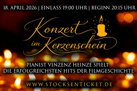 Erleben Sie einen stimmungsvollen Konzertabend bei Kerzenschein: Pianist Vinzenz Heinze interpretiert die erfolgreichsten Hits der Filmgeschichte in einzigartiger Atmosphäre.