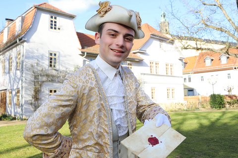 "Schillernde Geheimnisse" lüftet ein schwatzhafter Liebesbriefbote. Er hat eine lange Tradition hinter sich und seine Vorfahren besorgten das Geschäft der Nachrichtenübermittlung. Er springt vom Heute in die Zeit Friedrich Schillers und kommentiert vorlaut zweihundert Jahre Schiller-Rezeption. Folgen Sie ihm auf seinem indiskreten Rundweg durch Rudolstadts Innenstadt und besuchen Sie die Stätten, an den der große deutsche Dichter wirkte und die schönste Zeit seines Lebens verbrachte.