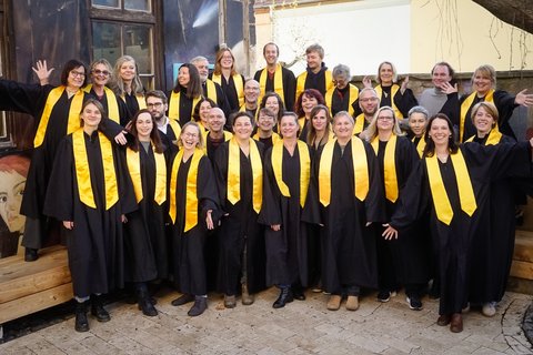 Die Jakob Singers aus Weimar halten ein buntes Programm mit mitreißenden Gospels, gefühlvollen Balladen und vielem mehr bereit. Der Gospelchor der Weimarer Jakobskirche wurde vor fast 30 Jahren gegründet und ist aus dem musikalischen Leben Weimars und der Region längst nicht mehr wegzudenken. Mit Tiefurt und den Montagsmusiken fühlen sich die Jakob Singers seit Jahren eng verbunden und bringen Vertrautes und Neues mit. Die etwa 40 Sängerinnen und Sänger musizieren unter der Leitung von Jula Vollmuth (Weimar) und David Neumann (Leipzig).