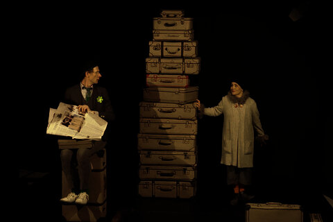 Monster im Koffer – ein clowneskes Stück Theater über zwei Menschen, die auf den Bus warten, über Hausmeister, die (keine) Hunde mögen, über seltsame Mäntel, wilde Autorennen und darüber, wie man Monster eigentlich fängt und warum man das lieber lassen sollte.
