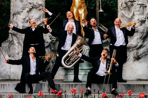 Dass das walzerbesoffene «Duidu, Duidu» und sein relaxtes Pendant «Dudidubidu» tatsächlich nur einen Katzensprung, nicht viel mehr als «a warm embracing dance away» voneinander entfernt sind – das ist den Meistern von Mnozil Brass schon seit Ewigkeiten klar. Mehr als dreißig Jahre lang schon kurven die sieben Kapazunder mit der größten Selbstverständlichkeit und ihren blitzenden Blasgeräten zwischen Johann Strauss und Frank Sinatra hin und her, zwischen Schostakowitsch und Prince oder auch leidenschaftlich gern von Schubert rüber zu ihren Wahlverwandten von Queen. Die weihevolle Erhabenheit der einen Seite kümmert sie ebenso wenig wie die vermeintliche Banalität der anderen. Aber Strauss – den sowohl Brahms, Wagner und Verdi, als auch die Handwerker und die Mädels aus der Vorstadt (und selbst ein Gershwin) glühend verehrten – er war der Urvater des nonchalanten Tändelns zwischen den Stühlen. Strauss produzierte als Erster Hits am Laufmeter, er nahm sich einen Arrangeur um schneller arbeiten zu können und begriff, dass er mit seinen Brüdern zusammen seinen Sound weltweit reproduzieren konnte. Er war der Erste der E und U unterlief und als Walzerkönig zum Massenphänomen wurde – süßer die Kassen nie klingelten. In Strau$$ enthüllen Mnozil Brass nun wirklich alles über Strau$$. Auch das Letzte.