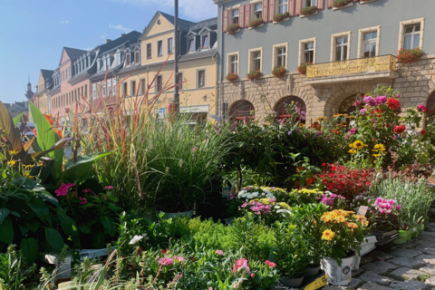 Auf dem Saalfelder Wochenmarkt finden sich vorrangig Produkte aus dem Thüringer Umland. Besonders für Liebhaber von saisonalen Pflanzen und Gemüsesorten steht ein umfassendes Angebot bereit.
