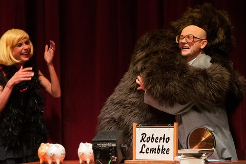 "Welches Schweinderl hätten’s denn gern?" Seit 15 Jahren ist diese Frage der Einstieg in ein "heiteres Beruferaten" und nicht mehr von unserer großen Bühne wegzudenken. In stets ausgelassener Stimmung leitet Showmaster Roberto Lembke (verkörpert von Steffen Mensching) durch heitere Fragerunden, in denen das Rateteam allerlei ausgefallene und einzigartige Berufe erraten muss. Heiter, charmant und gut aufgelegt führen Roberto Lembke, seine geschätzte Assistentin Mary Lou (Anne Kies) und Thomas Voigt als musikalischer Begleiter durch den Abend voller Wendungen, Witz und Überraschungen bis zum Schluss – denn wer der Star des Abends sein wird, bleibt bis zum Ende streng geheim. Noch stehen viele bunte Schweinderl bereit und noch weitaus mehr kuriose Berufe auf unserer Liste.