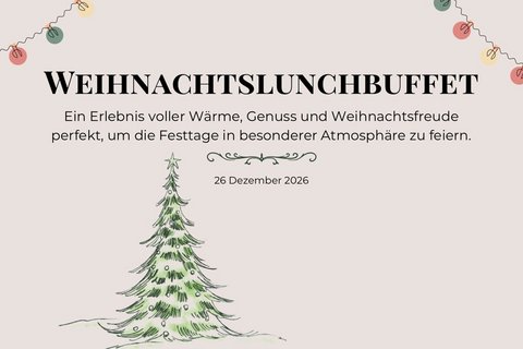 Zwischen 12.30 Uhr und 14.30 Uhr erwartet Sie eine festliche Auswahl an winterlichen Köstlichkeiten – von aromatischen Vorspeisen über traditionelle Fleisch- und Fischgerichte bis hin zu liebevoll zubereiteten, weihnachtlichen Desserts. Unser Küchenteam verwöhnt Sie mit Spezialitäten, die die Magie der Weihnachtszeit einfangen und Genussmomente für alle Sinne schaffen.