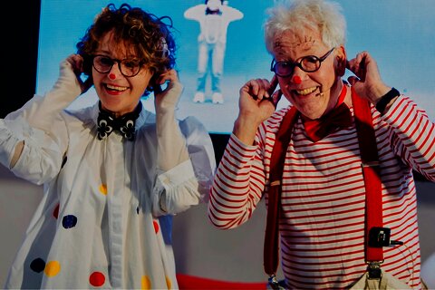 Lustige Tierfiguren erklären „Clown Hajo“ die Welt.