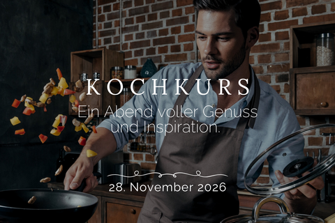 Am 28. November 2026 lädt Sten Fischer zu einem exklusiven Kochkurs im Dorotheenhof ein. Gemeinsam mit ihm entdecken Sie raffinierte Rezepte, wertvolle Tipps aus der Profiküche und genießen anschließend die selbst zubereiteten Köstlichkeiten in entspannter Atmosphäre.