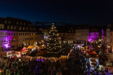Ein buntes Programm, ein geschmückter Marktplatz sowie viel Glühwein und reichlich Weihnachtsduft gehören auf jeden Fall dazu. Am Freitag wird jedes Jahr die Weihnachtsbeleuchtung des Baumes eingeschaltet und der ganze Marktplatz wird in ein schönes warmes Licht getaucht. Natürlich wird auch auf den traditionellen Stollenanschnitt - nicht verzichtet.