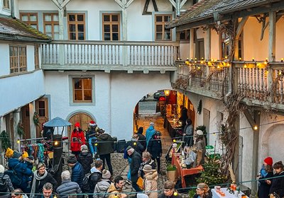 Weihnachtlicher Markt mit lokalen Unternehmen und kulinarischen Angeboten