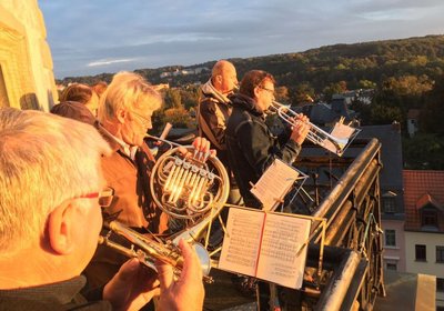 Kuratoren: Dr. Katrin Henzel (Forschungsbibliothek Gotha), Dr. Christian Göcke und Jacqueline Gabbey (beide Friedenstein Stiftung Gotha)Inzwischen zur Tradition geworden, erklingt die Bläsermusik des Altenburger Posaunenchors wieder vom Nikolaikirchturm.