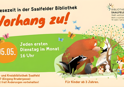 Jeden ersten Dienstag im Monat laden wir Kinder im Alter ab drei Jahren zu unserer Vorlesezeit „Vorhang zu“ ein.