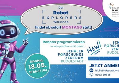 Entdeckt die Welt der Robotik! In Kooperation gemeinsam mit dem Schüler-Forschungs-Zentrum Rudolstadt. Steuert, programmiert und experimentiert mit…Geführte Tour
