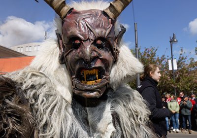 Beim Marktumzug der Thüringer Bergteufel ziehen mystische Gestalten durch die…