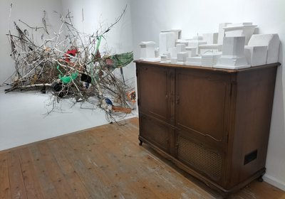 Kati Münter verbindet in ihren Collagen und Assemblagen Fundstücke mit eigenen Zeichnungen. Diese präsentiert sie in ihrer Serie „Füllwörter“, die in…