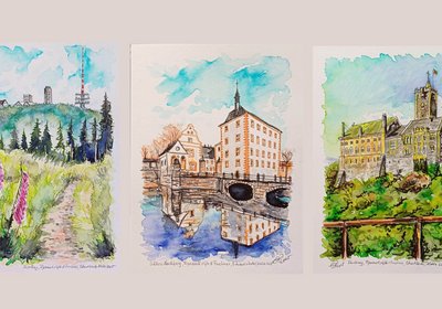 In seiner mittlerweile 7. Ausstellung in der Noll zeigt der gebürtige Jenenser in gewohnter Manier zum einen 20 kleinformatige (A4) Aquarelle, schön…