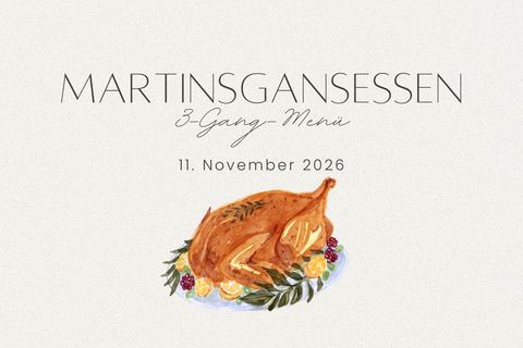 Am 11. November 2026 feiern wir den Martinstag mit einem besonderen kulinarischen Erlebnis. Freuen Sie sich auf ein 3-Gang-Gänsemenü, das zu den lukullischen Highlights im November zählt.