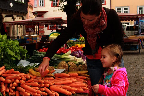 Jeden Dienstag findet auf dem Marktplatz der Wochenmarkt statt. Ausgenommen sind Feiertage die auf einen Dienstag fallen.