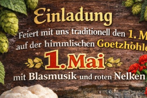 Feiert mit uns traditionell den 1. Mai auf der himmlichen Goetzhöhle mit Blasmusik und roten Nelken.