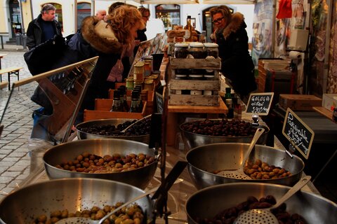 Zwischen duftenden Crêpes und würzigem Käse laden Sitzgelegenheiten zum Verweilen, Probieren und Genießen ein. An den Markttagen Dienstag, Donnerstag und Freitag wird das Angebot durch die Stände des Wochenmarktes ergänzt.