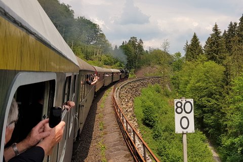 Am 14.05.2026 wollen wir von Meiningen aus auf eine Rundfahrt aufbrechen und die Landschaft, Brücken, Steigungen an uns vorbeiziehen lassen. Wer es möchte, kann unsere historische Dampflok 50 3501 am offenen Fenster arbeiten hören und sich beim Geruch von Rauch, Dampf und heißem Öl vielleicht an vergangene Zeiten erinnern.
