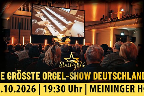 Der Meininger Hof in Saalfeld wird am 10. Oktober 2026 zum Zentrum eines einzigartigen Sound-Spektakels! Nico Wieditz, Deutschlands Orgel-Rebell und Virtuose, verwandelt die „Königin der Instrumente“ in ein modernes Klangwunder und liefert mit STARLIGHTS LIVE die Größte Orgel-Show Deutschlands.