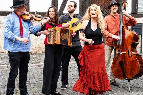 Mit ihrer einzigartigen Mischung aus Weltmusik, Gipsy, Balkan, Klezmer und Chanson verzaubert das Erfurter Ensemble sein Publikum. Die Musiker kommen aus verschiedensten musikalischen Universen und vereinen ihre unterschiedlichen Einflüsse zu einem harmonischen Ganzen. Im Konzert erwartet die Zuhörer ein lebendiges Mosaik aus Klängen, Rhythmen und Melodien, das die Traditionen der Gipsy-, Klezmer-, Balkan- und Weltmusik in all ihrer Vielfalt widerspiegelt.