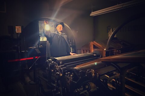 Mit Laternenlicht und Kostüm geht es eine Stunde lang durch unser Haus aus dem 16. Jahrhundert in der Scherfgasse 5 – ein ganz besonderes Museumserlebnis! Dabei lernen Sie alles über die spannende Entwicklung der druckgrafischen Techniken und den Druckerei-Standort rund um die Pavillon-Presse.