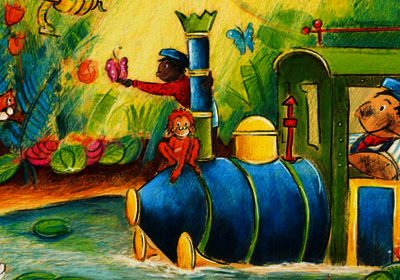 Jim Knopf und Lukas der Lokomotivführer reisen nach Borneo, um einen kleinen Orang-Utan zurück in seine Familie zu bringen.